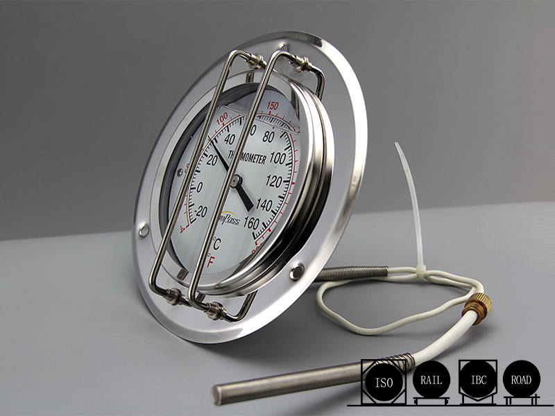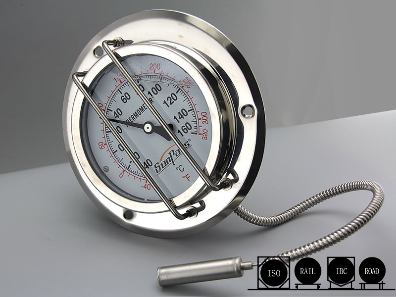 Термометр — это прибор, используемый для измерения температуры, и он является важным компонентом при транспортировке жидкостей и газов в контейнерах-цистернах ISO. Термометр для контейнеров-цистерн ISO состоит из датчика температуры и дисплея. Датчик температуры обычно представляет собой зонд, который вставляется в контейнер и определяет температуру транспортируемой жидкости или газа. Дисплей обеспечивает визуальное считывание температуры, что помогает операторам контролировать уровни температуры внутри контейнера во время транспортировки.